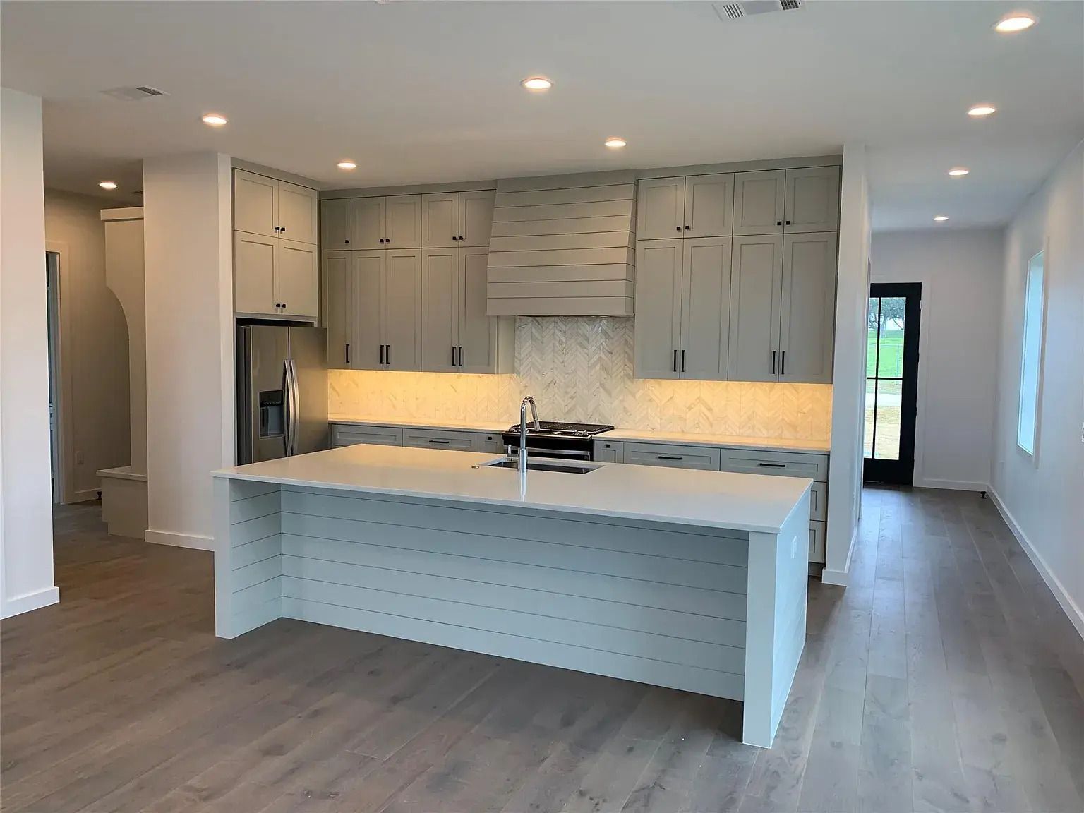 The main level is built for connection and style, featuring seamless flow between the kitchen, dining, and living areas. The kitchen shines with sleek stainless steel appliances, designer tile, a large island, and ample storage. Recessed lighting and French doors add sophistication while highlighting the home’s craftsmanship.